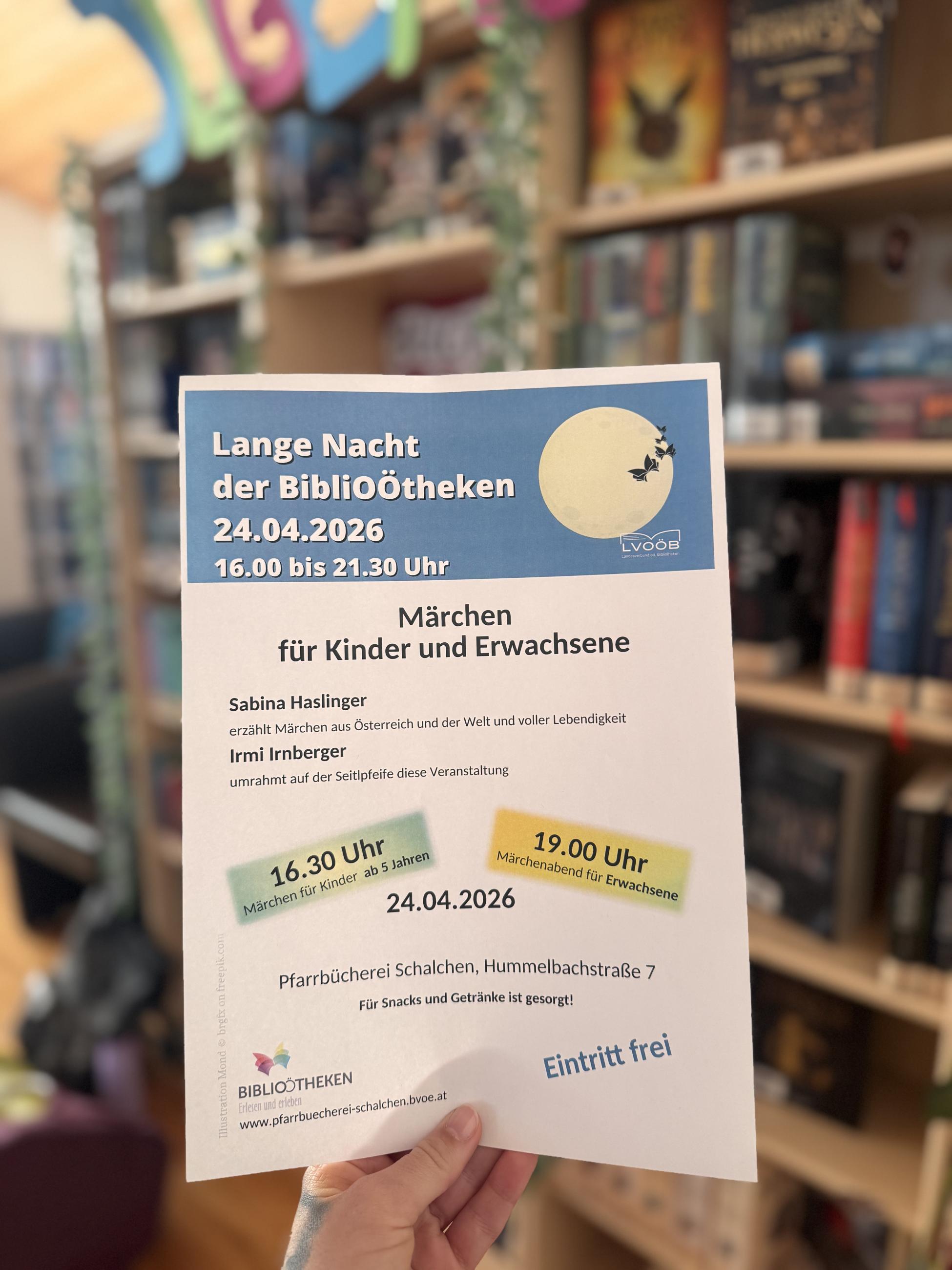 Am 24. April 2026 laden wir euch herzlich zur Langen Nacht der BibliOÖtheken in die Pfarrbücherei Schalchen ein! 🕯️📜